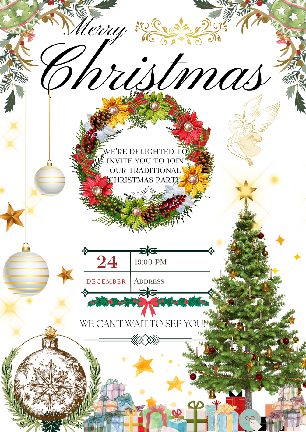 We present our exclusive Christmas invitation template designed in Canva — perfect for those who dream of a celebration filled with spirit and charm.